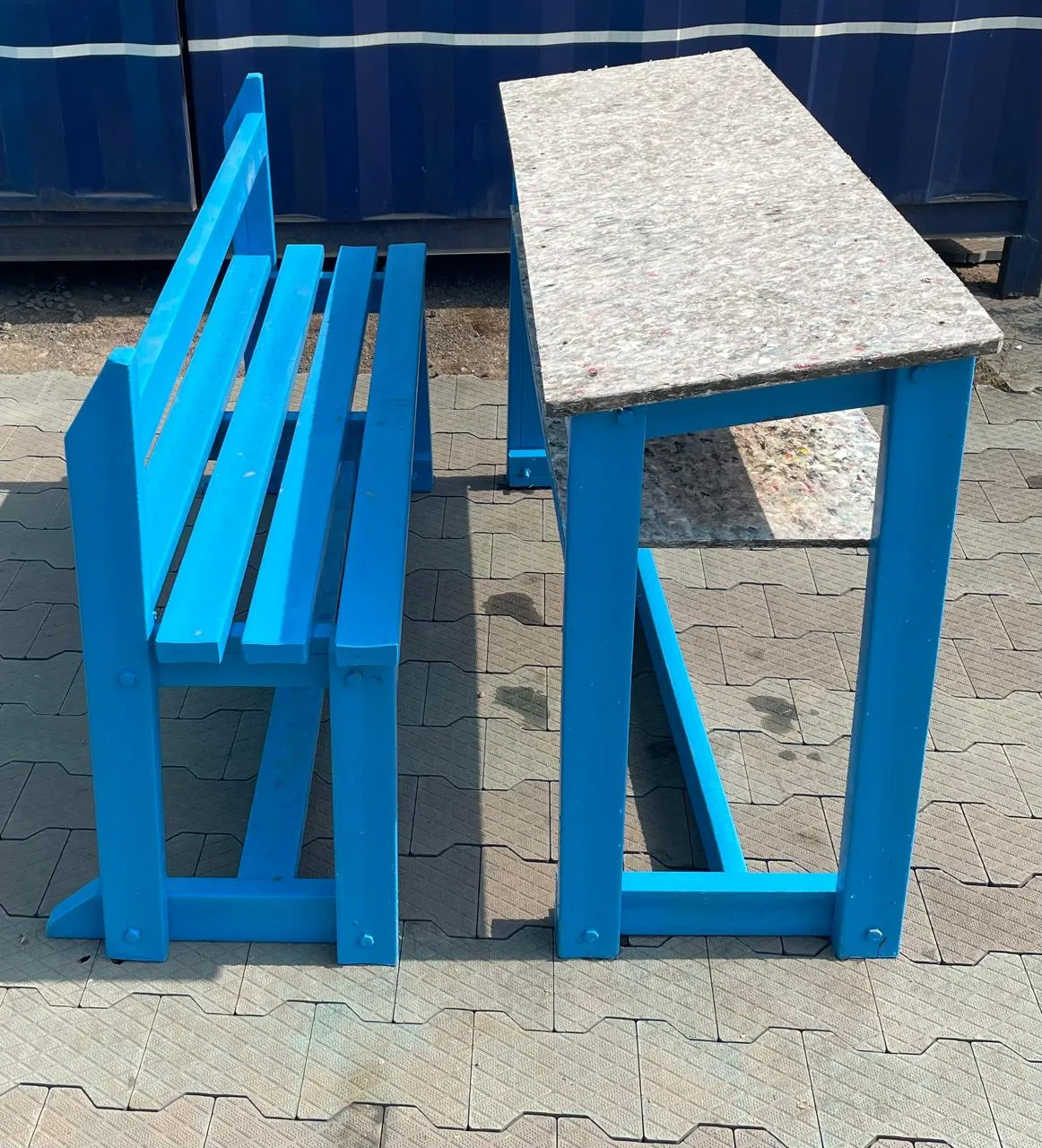 Tables & Chair Eco Friendly School / Office Table and Chair More info Style #005 SIZE Table : 3ft x 2ft x 2.60ftChair : 1.6ft x 2.9ft WEIGHT Table : 39.000 KgChair: 15.500 Kg COLOUR ANY OTHER COLOUR AS PER CUSTOMER REQUIREMENTApproved by MCGM Eco Friendly School Bench More info Style #006 SIZE Desk : 4ft x 1.6ft x 2.60ftSitting : 4ft x 1.2ft x 1.6ft WEIGHT 63.000Kg COLOUR ANY OTHER COLOUR AS PER CUSTOMER REQUIREMENTApproved by MCGM